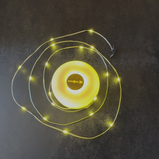 O grande destaque está na sua tira de LEDs de 8 metros, que está enrolada no interior da estrutura e pode ser facilmente estendida ou recolhida graças ao gancho integrado, garantindo máxima organização e flexibilidade de uso. Esse gancho é prático para pendurar, ideal para usar em tendas, árvores, varões ou qualquer superfície elevada.